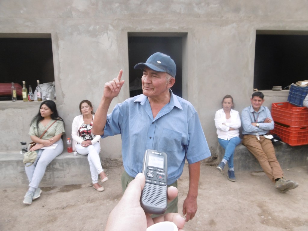 Luego de describirnos el funcionamiento de su planta de producción, nos llevó a un área protegida por la sombra de unos árboles de mora. Nos explicó que la planta de mora, al igual que la planta de olivo, brinda un aire fresco y pudimos comprobar que esto era absolutamente cierto, ya que en esa zona en la que nos encontrábamos no sentíamos el calor que sí hacía en los alrededores. En ese mismo espacio se encontraba su bodega de vinos que consiste en un almacén techado con calamina y sobre este techo unas plantas de mora permiten que todo su interior se mantenga frío como si se tratara de un refrigerador artesanal. Es así como los vinos se conservan fríos sin necesidad de contar con algún sistema de refrigeración.