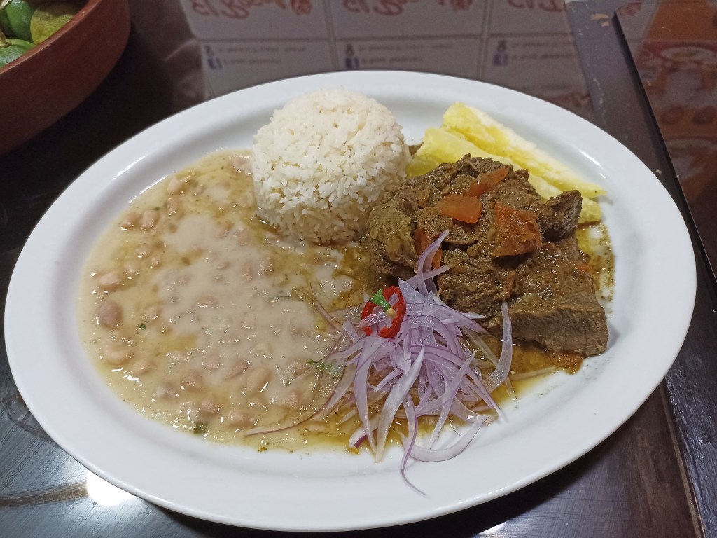 Como nos cuenta el chef y administrador David Grados Toledo, el seco a la huachana se diferencia del seco a la norteña solamente en el color. “La variante es la espinaca y el culantro, y lo acompañamos con frejoles, arroz, yuca y salsa criolla”.