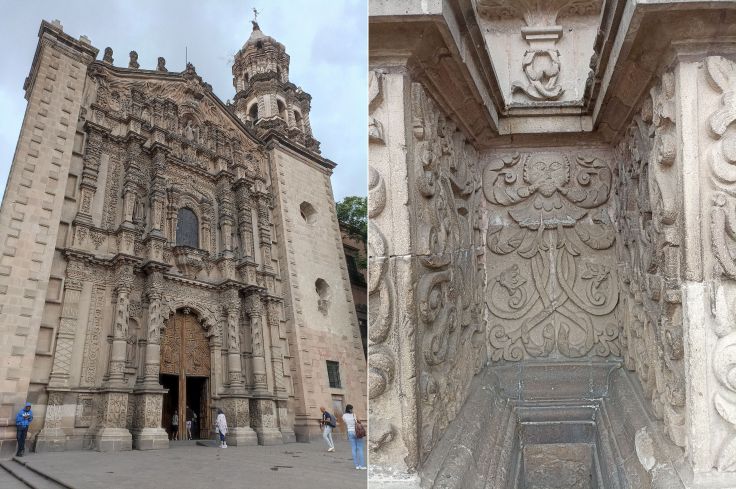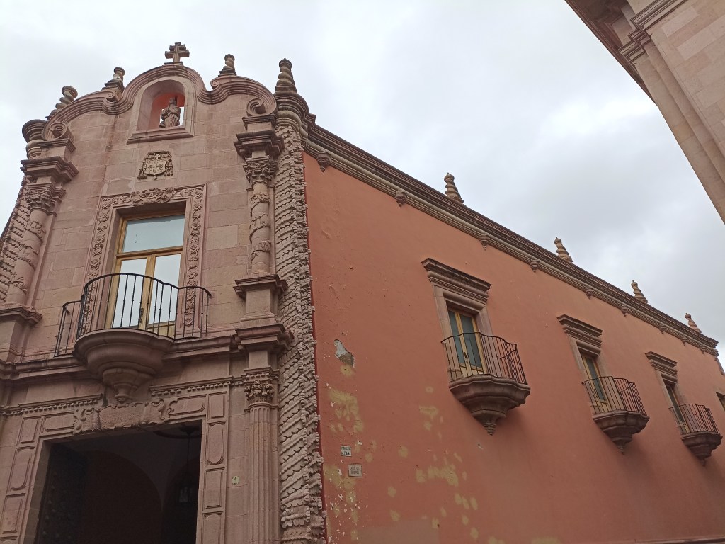 Lo que más llamó mi atención del centro histórico, además de sus bellas callecitas empedradas, fue la hermosa arquitectura de sus edificios, muchos de ellos decorados de cantera rosa, aunque como nos explicó muy bien Miguel Galarraga Robledo, guía federal acreditado de Auténtico San Luis, la cantera es el lugar de donde se extraen los minerales, así que el nombre más apropiado para designar a este material es la ríolita, una piedra que se puede encontrar en diferentes colores.