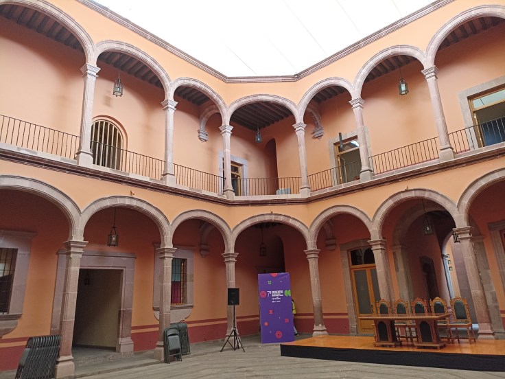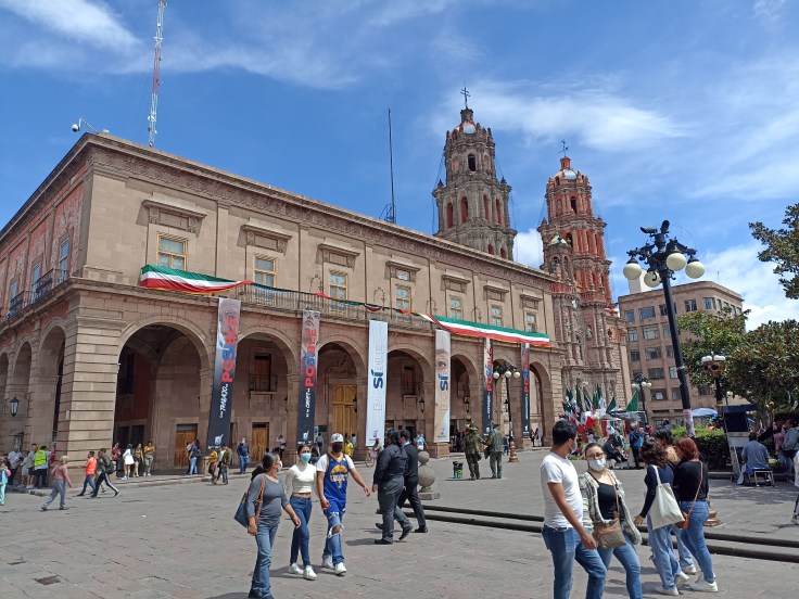 Esta fue sin duda una hermosa mañana recorriendo a pie el centro histórico de San Luis Potosí y el clima estuvo muy fresco. Apenas hubo un poco de lluvia que pasó desapercibida y un sol que iluminó nuestro camino. Comenzaba a sonar mi estómago, pero ya nos esperaban en el Palacio Municipal para almorzar y probar potajes potosinos.