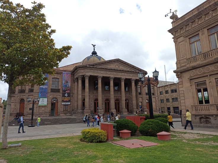 Como muchas edificaciones del centro histórico, este teatro fue construido entre 1882 y 1910, una época del porfiriato en la que hubo condiciones de estabilidad económica. Presenta una fachada de estilo neoclásico que nos recuerda las columnas del Partenón de Grecia y en la cúpula podemos apreciar al águila que vemos en la bandera mexicana, pero lo curioso es que el ave está mirando de frente y no de costado, lo que significa que fue construida antes de la revolución mexicana, entre 1910 y 1921.
