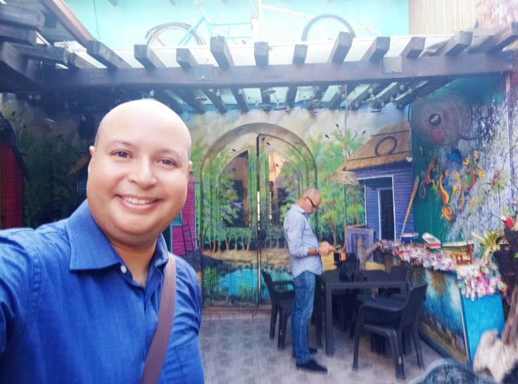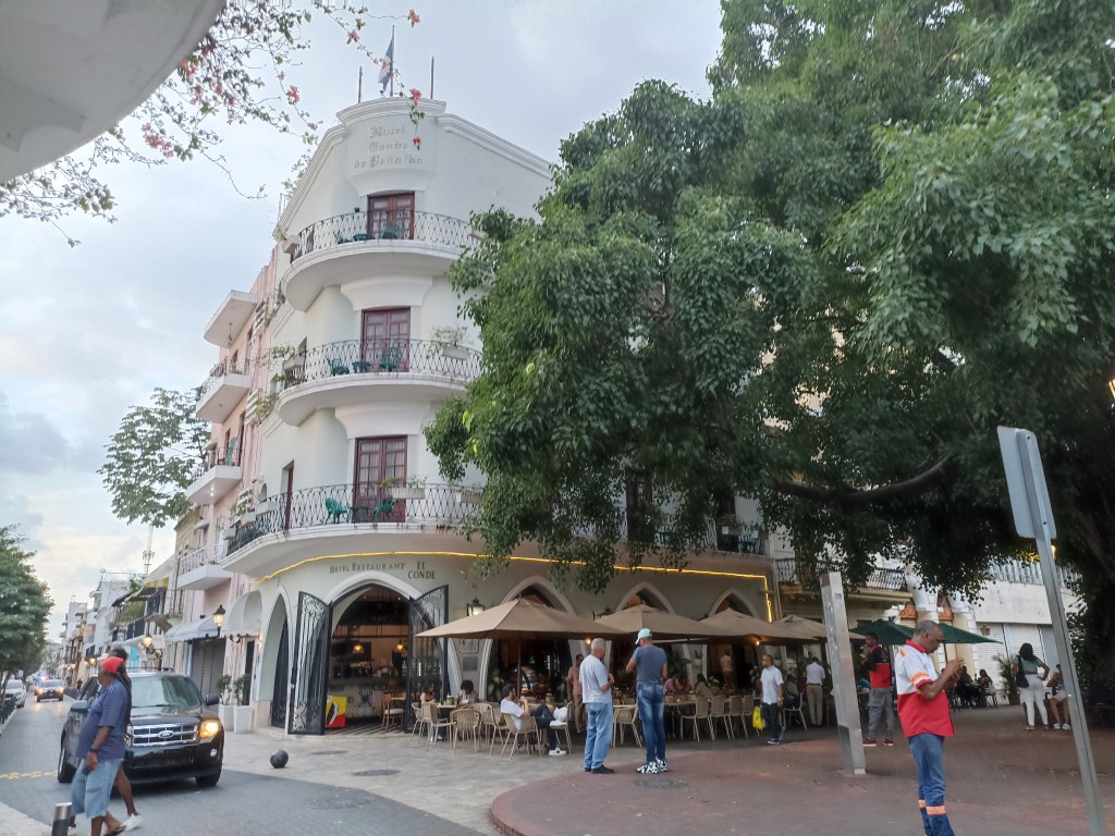 Esta aventura culinaria comenzó en la zona colonial de la capital. Luego de instalarnos en el Gran Hotel Europa, con un grupo de colegas periodistas turísticos fuimos conducidos por nuestros amigos Álbida y Joel hasta la Cafetería El Conde, un bello bar restaurante con terraza muy bien ubicado en una esquina al lado del Paseo del Conde y frente a la Plaza Colón. Lo que resulta muy curioso es que a este local se le conoce más como El Palacio de la Esquizofrenia que por su propio nombre.