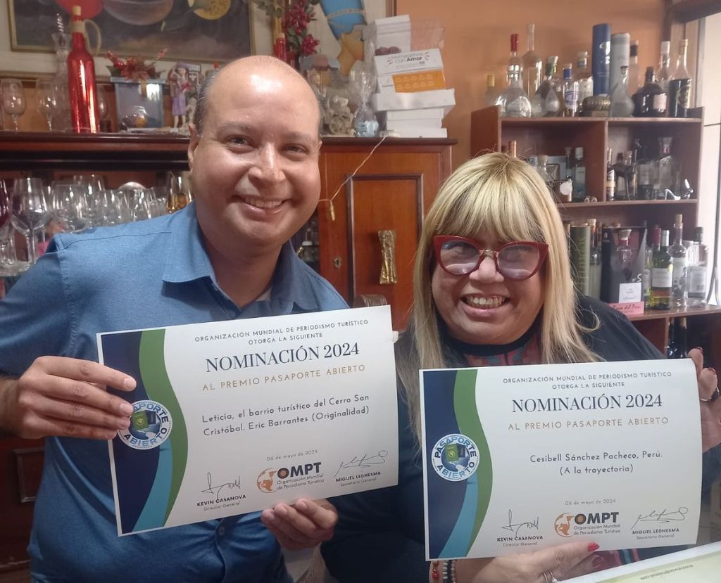 Uno de nuestros compatriotas que nos representará en este concurso es el periodista Eric Barrantes García, quien buscará conseguir su tercer galardón, pues en el 2022 obtuvo el premio en la categoría Emprendedor Turístico Comprometido y en el 2023 volvió a alzarse con otra estatuilla en la categoría Reconocimiento de los Otros por su artículo «Sentir para ver, una experiencia inclusiva en San Luis Potosí». Este 2024 está nominado en la categoría Originalidad por su reportaje escrito «Leticia, el barrio turístico del Cerro San Cristóbal».